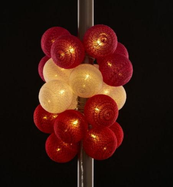 Γιρλάντα LED με 20 χρωματιστές μπάλες. Διάμετρος 6 cm, μήκος καλωδίου 330 cm. Λειτουργεί με 2 μπαταρίες ΑΑ (δεν περιλαμβάνονται). Η γιρλάντα μπορεί να χρησιμοποιηθεί τόσο σε εσωτερικούς όσο και σε εξωτερικούς χώρους.