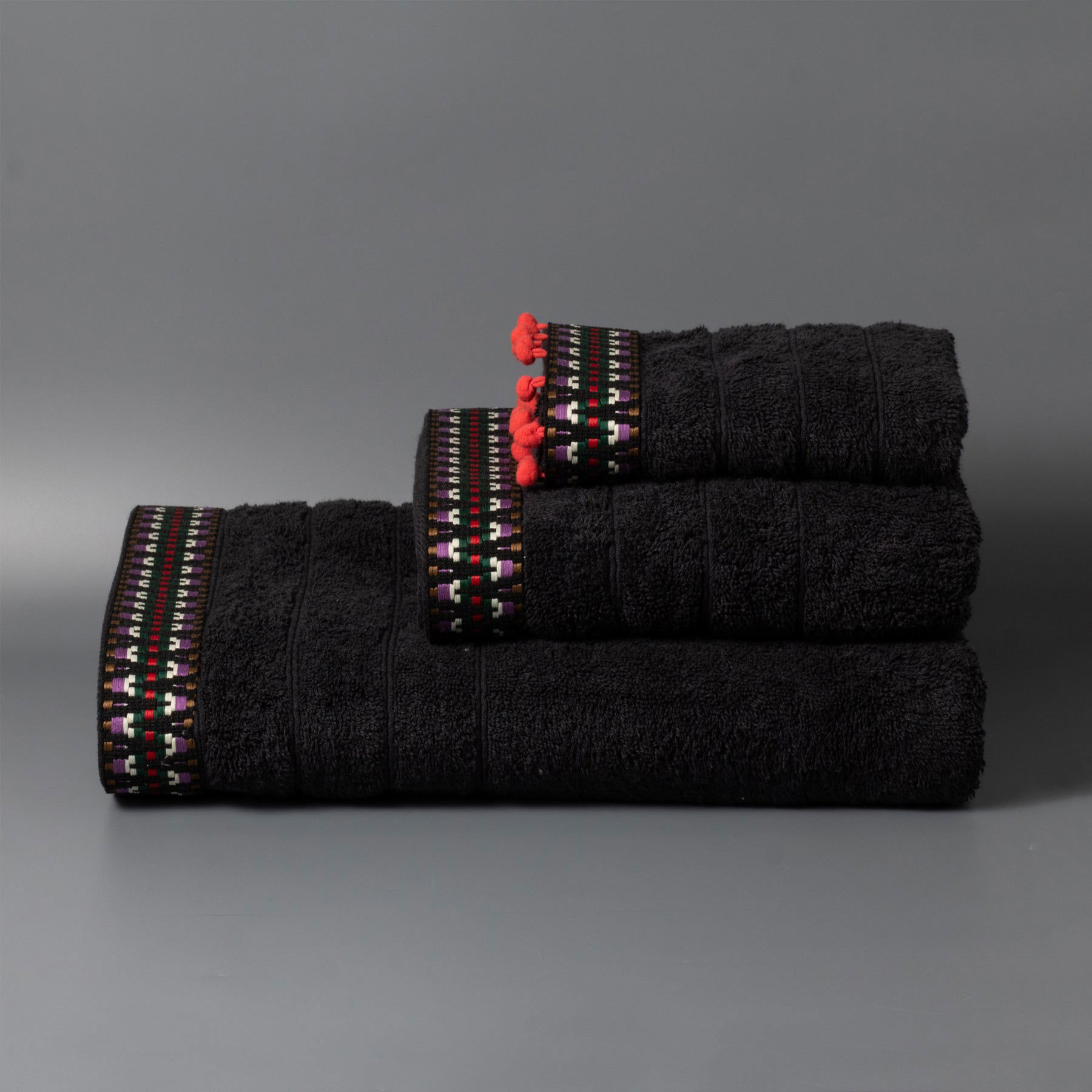 Εικόνα για Σετ Βαμβακερές Χειροποίητες Πετσέτες Enye Μαύρες