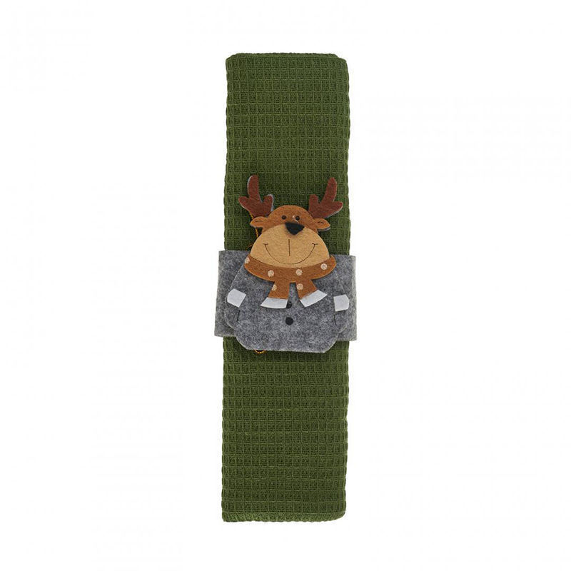 Χριστουγεννιάτικη πετσέτα φαγητού λαδί με γκρι δαχτυλίδι τάρανδος.